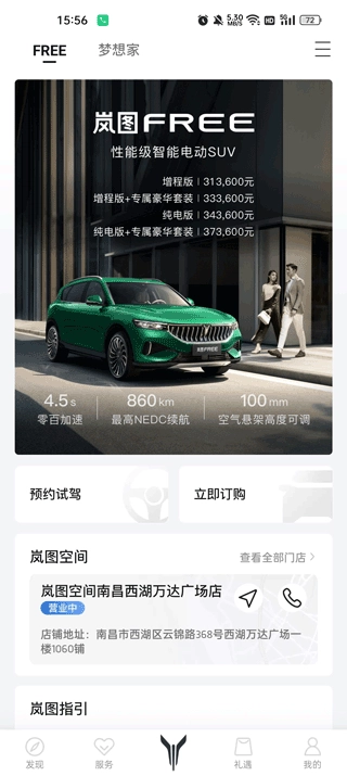 4、汽车资讯服务平台集合了岚图官方资讯,伙伴社区,订车购车,礼遇商城等全方位内容;