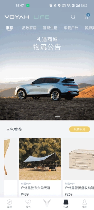 4、点开礼遇,会发现这是一个车载商城,在这里你可以淘到你想要的智能用品。