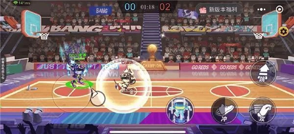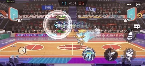 当我们成功拿到球,且对手与我们距离很近,同时我们自身离篮筐尚有一段距离时,就可以通过跃起使用【虚拟闪现】搭配【冲】的组合动作,瞬间抵达篮筐完成扣篮。