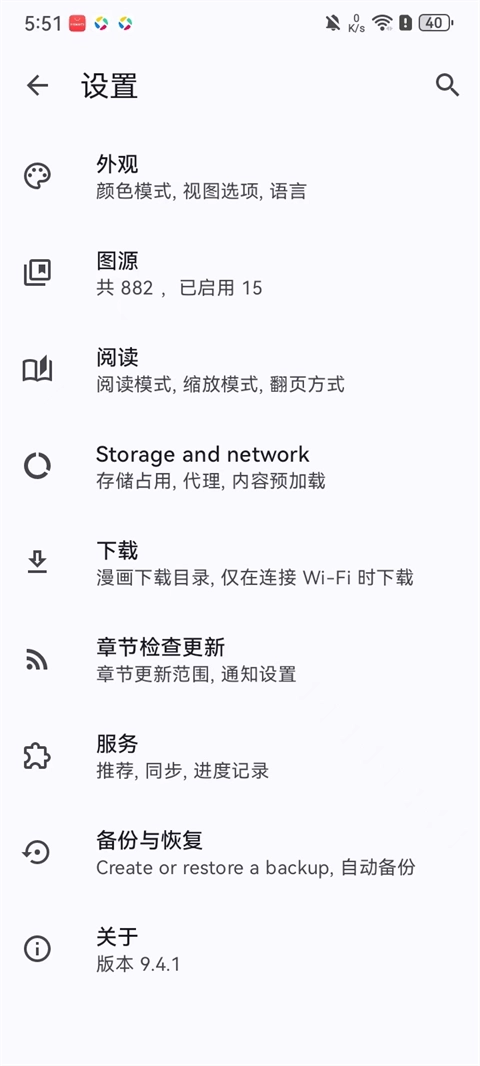 在设置中配置外观、图源、阅读等更多个性化功能选项。