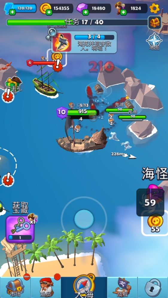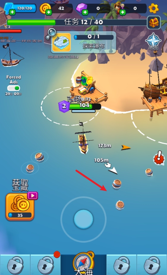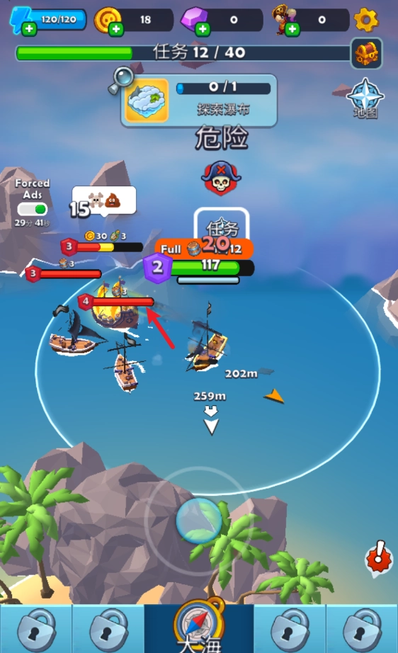 当你的海盗船血量偏低时,能够返回自己的海岛进行恢复。