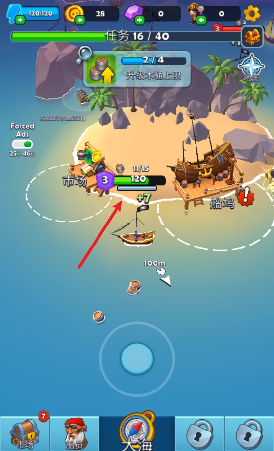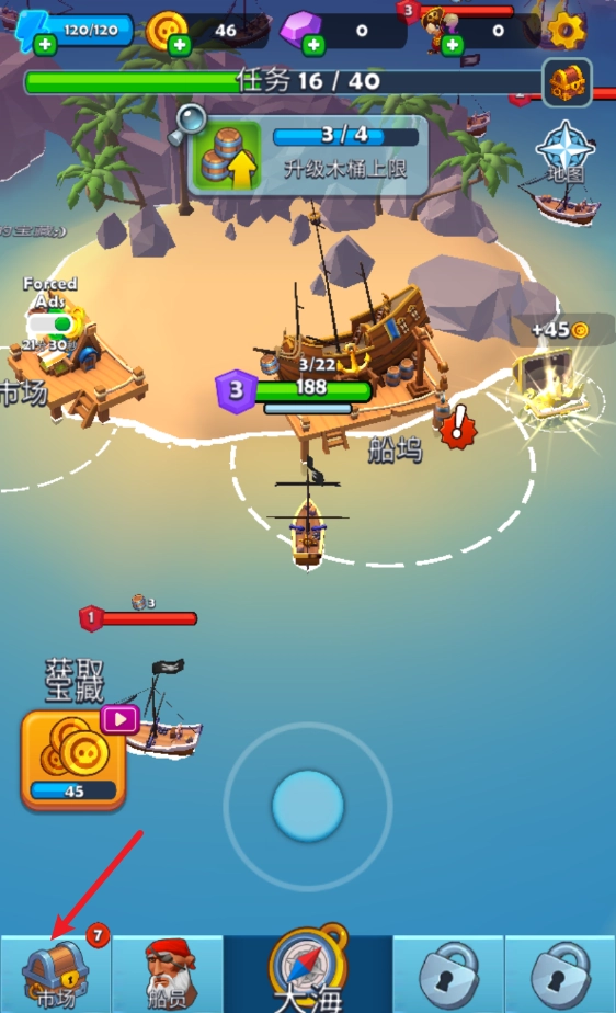 在船坞这里可以消耗金币来升级海盗船。