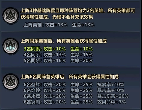 当我方英雄阵营处于克制目标的状态时,会相应提升暴击率、触发强击效果并增加伤害输出;而如果我方阵营被目标克制,则会出现暴击率下降、触发弱击效果以及伤害降低的情况。