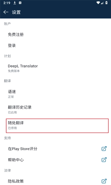 软件具备随处翻译的便捷功能,在其他应用程序里使用时,无需对文本进行复制粘贴操作,就能让翻译过程更加快捷。你可以点击界面右上方的设置选项,进而进入相关设置页面。