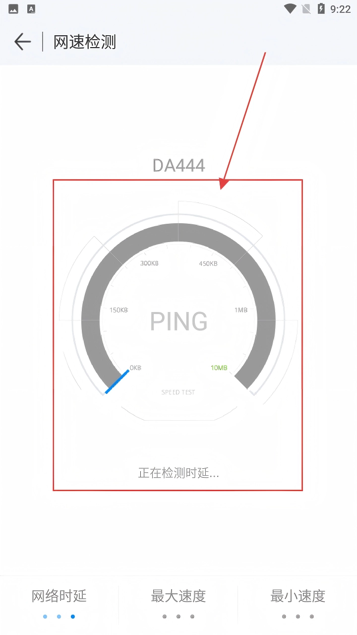 进入网速检测页面后,系统会自动启动时延检测,您只需耐心等待检测结果即可。