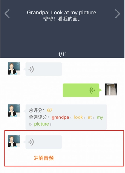 跟读结束后,系统会依据你刚才的跟读表现给出评分并进行讲解,这能更有效地帮助你纠正发音问题。