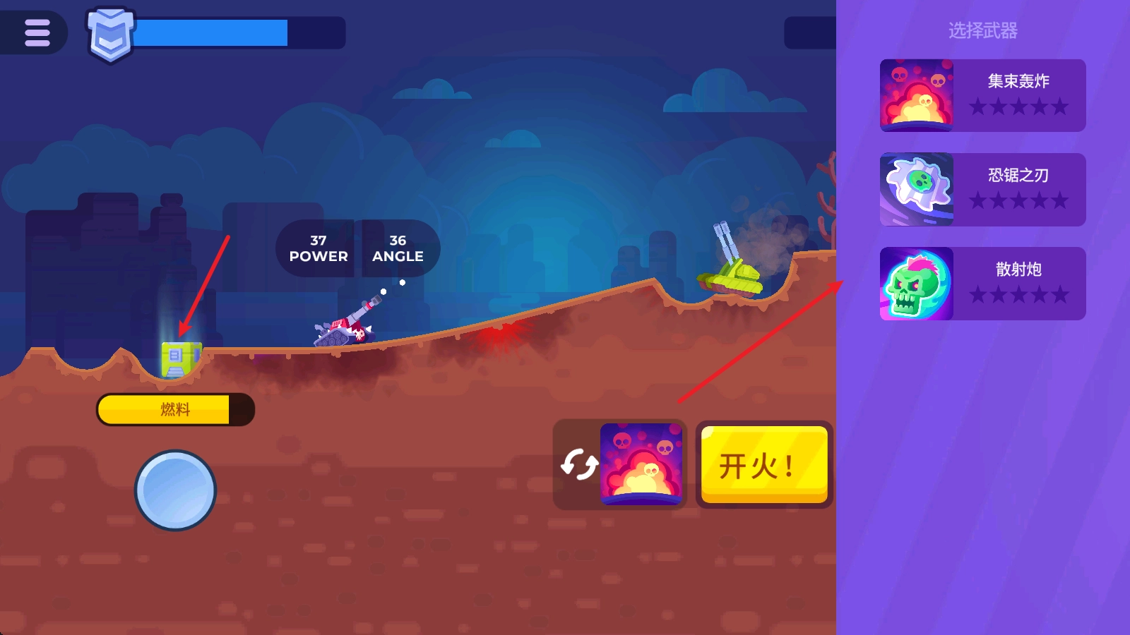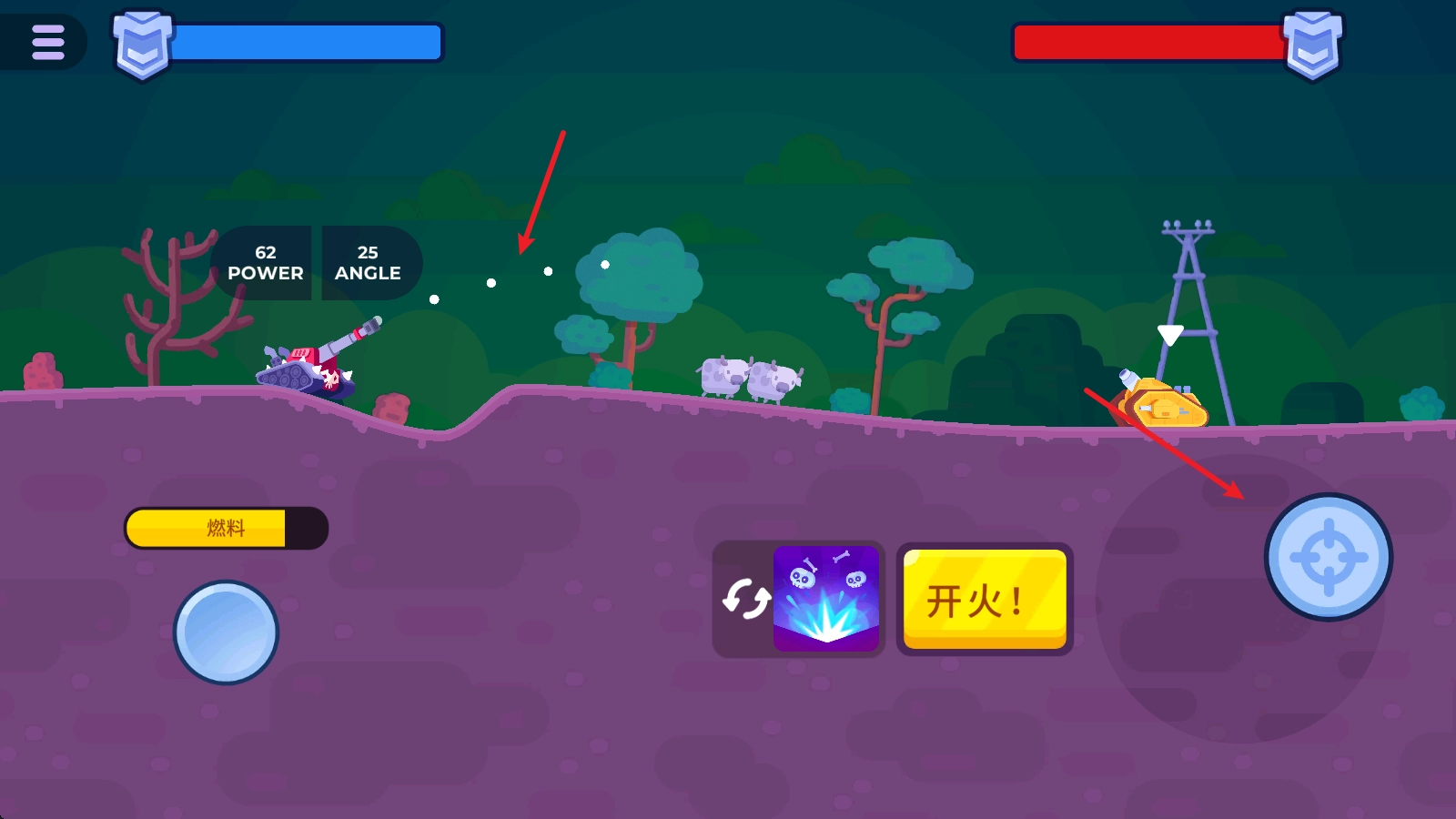 接下来我们就能展开射击,炮弹击中敌人后便会产生伤害。