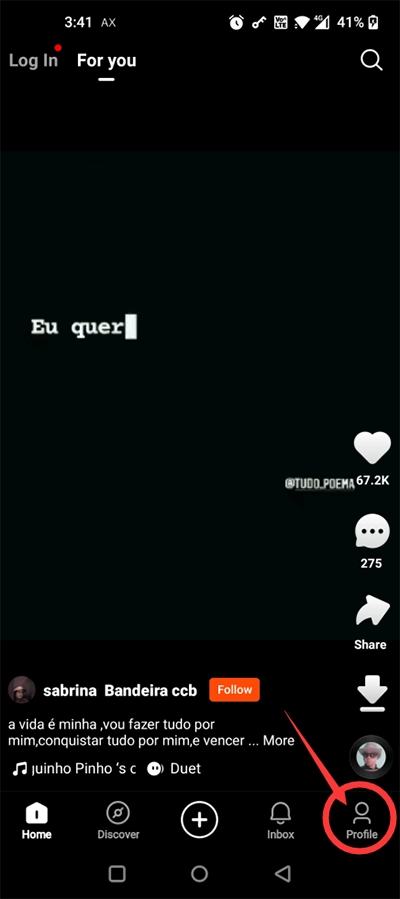 安装好kwai快手国际版后,点击右下角的“profile”。