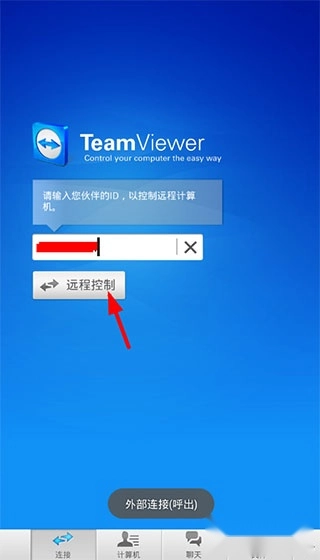 然后在手机端的“连接”界面输入电脑上的id,点击“远程控制”按钮即可完成连接。