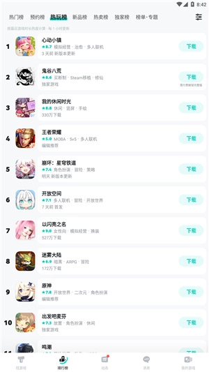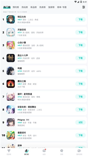 进入后能看到各类榜单,像热门榜、预约榜、热玩榜之类的。