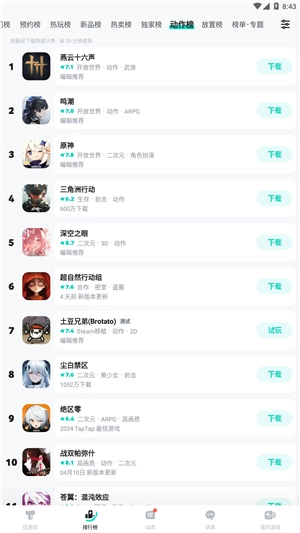 TapTap安卓版已经正式上线,玩家进入平台后,每天都能轻松体验到各类有趣的游戏,涵盖剧情解谜、冒险闯关、多人射击等丰富类型;而且所有国服游戏在这里都能找到,下载速度也十分快捷,最高可达数十MB每秒,不会占用玩家太多时间。