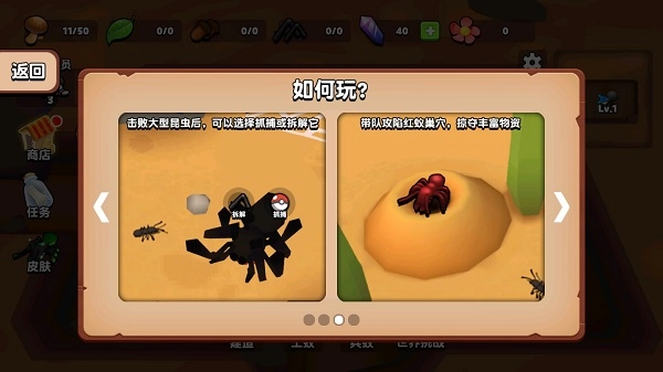 游戏机制简单又有趣,还能解锁新能力;随着等级提升,你可以挑选不同的蚂蚁队伍,让自己的蚂蚁家园成员越来越多,亲手经营这个独特的生存世界。