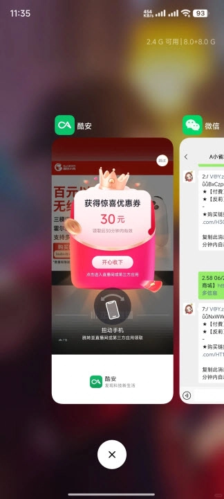 接着打开酷安,映入眼帘的封面广告就是30元优惠券。点击进入后会直接跳转到抖音盖世小鸡启明星店铺,领取立减30元的优惠券!