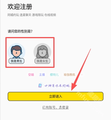 选择性别,点击立即进入就可以啦