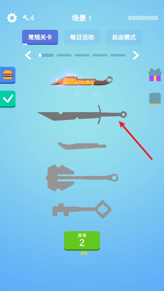 除了基础的关卡挑战,我们的游戏里还设有每日活动与自由模式,能让你体验到更加丰富的磨刀乐趣。