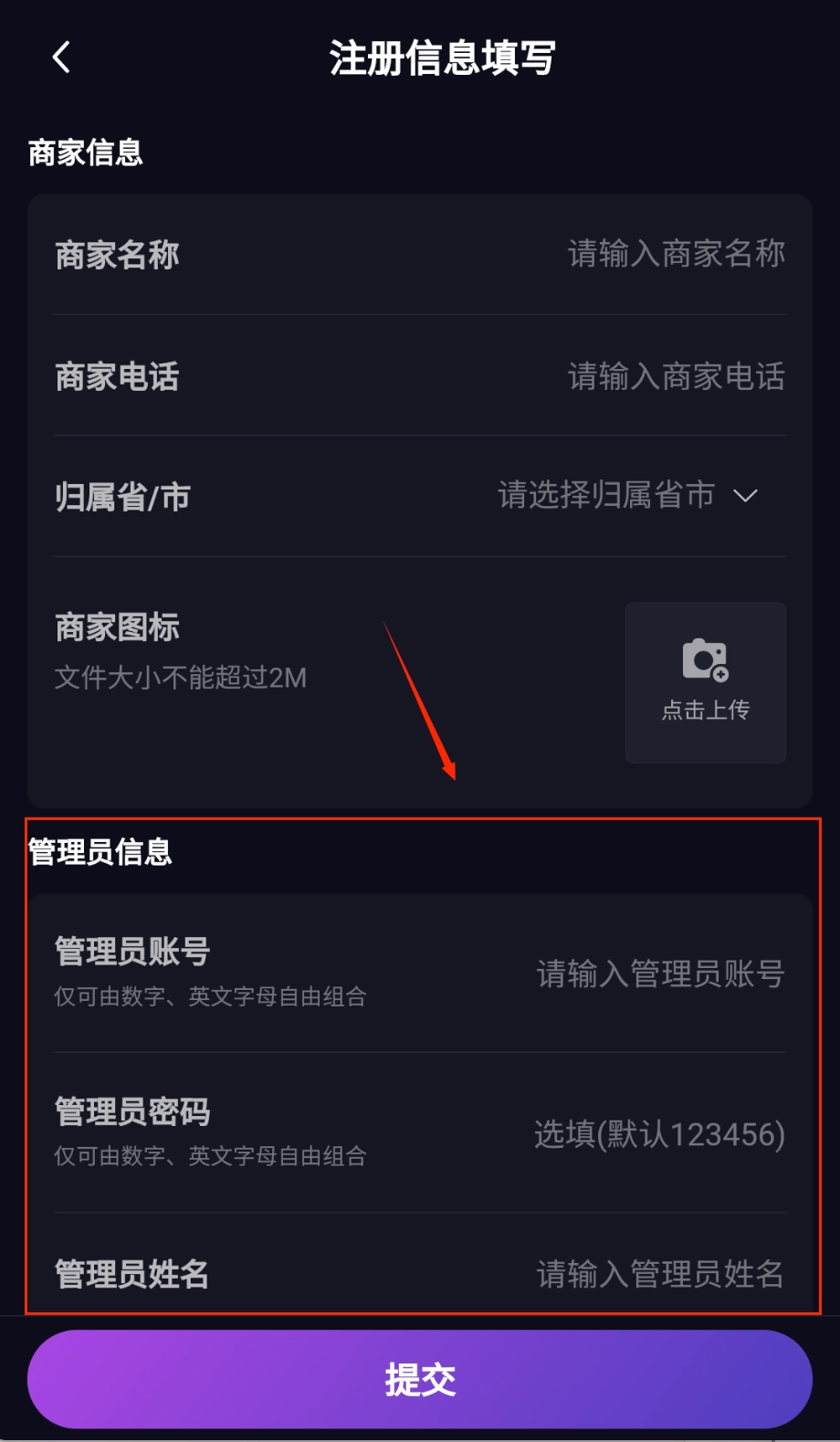 注册的时候,得先填写商家名称和联系电话,别忘了从下拉菜单里选择对应的省市归属地,商家图标能够上传,但要注意大小不要超过2M哦。