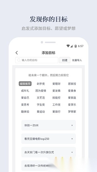 你可以给每个目标设定预计完成的时间,在推进过程中记录下自己的心情、感悟或是进展情况。等最终达成目标的时候,回头看看一路走来留下的印记,就能见到独属于你的风景。