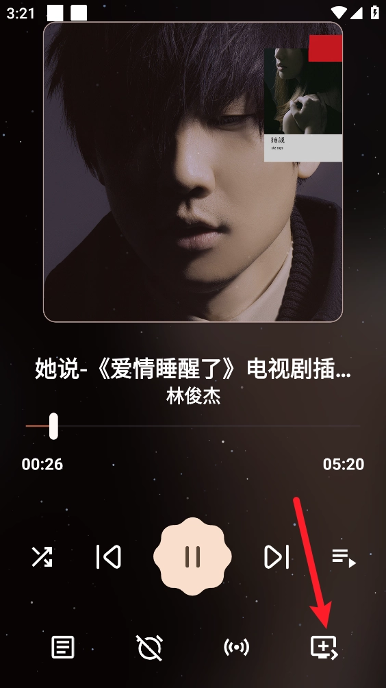 然后在播放页点击箭头所指图标。