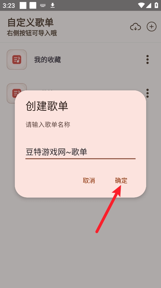 输入歌单名称后,点击"确定"。