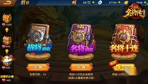 系统每日都会免费提供5次招募战将和1次招募名将的机会,可别错过了。