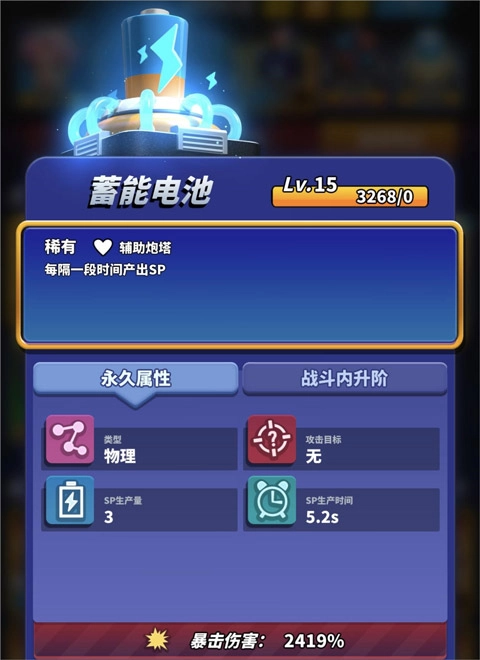 蓄能电池建议保留3级及以上的,这样能实现利用最大化;若没有空位,可将2级和1级的蓄能电池合成,以此容错来购买炮塔并召唤蛇,为输出方强化炮塔。