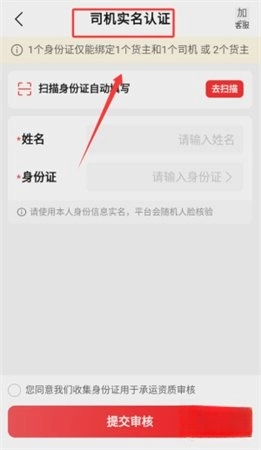 用户进入司机认证页面,提交驾驶证、行驶证等相关资料,等待系统审核,完成专业身份验证。