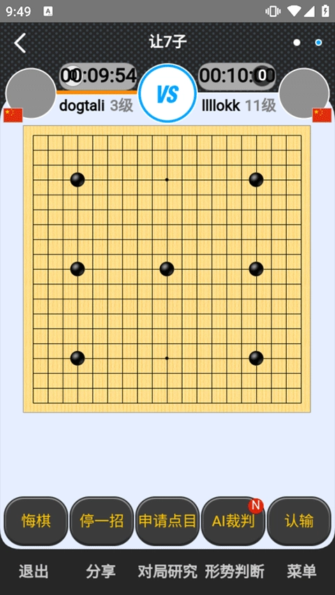 落子操作并非局部放大模式,而是通过点击屏幕选定位置后,按下底部的落子键完成,用起来挺顺手的。不过我有点担心小屏幕手机会不会受影响(总把落子放在最前面说,是因为我的第一部智能手机是电阻屏,那时候得拿根笔在屏幕上点来点去,反而能保证落子的准头;后来换了电容屏的安卓机,自己手大,一按上去几乎占了四分之一屏幕,总怀疑能不能精准落子,现在想想可能是杞人忧天了)。