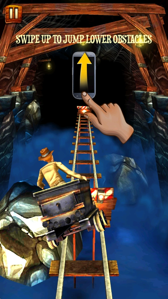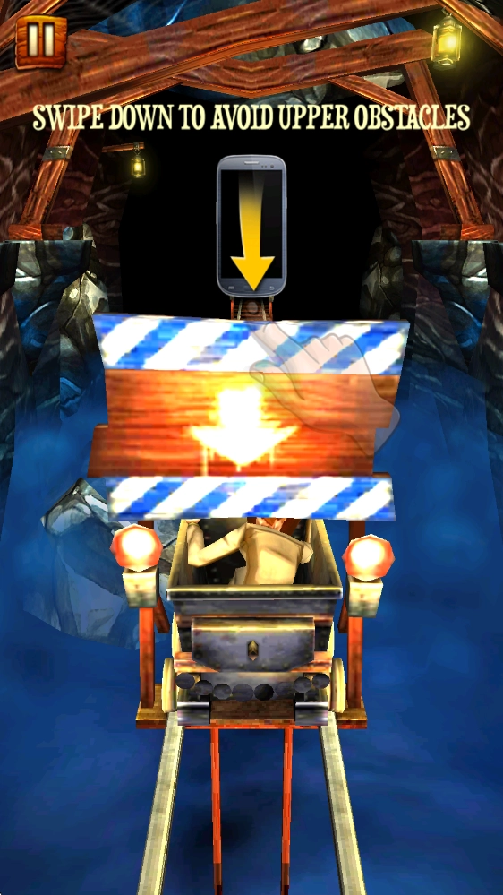 开始游戏后,上划即可控制矿车跳跃,躲避障碍。