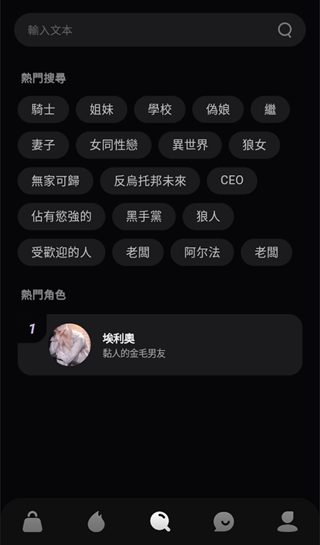 最后在搜索页面,你可以借助热门标签(像“騎士”“異世界”这类)或者热门角色(例如“埃利奧”)来查找更多和角色相关的内容。
