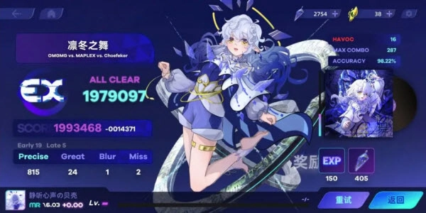 其中EXP可以提升镜阶,而棱镜可以解锁乐曲。