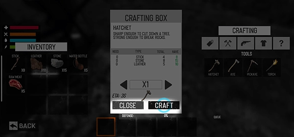 你可以打造各式各样的物品来维持生存,家和其他在海洋上存在的事物都能成为你的家。在这场生存岛的冒险里,从你的库存中挑选不同的物品,以便能够长久地生存下去。