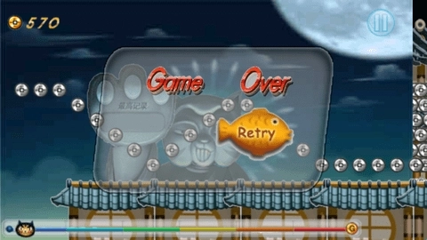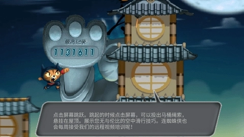 轻轻点击一下屏幕,我们的忍者猫就会跳起来。