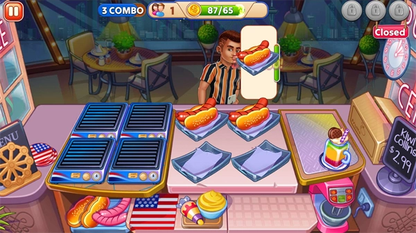 进入关卡后点击厨具制作各式美食,每位顾客所需的美食各不相同。