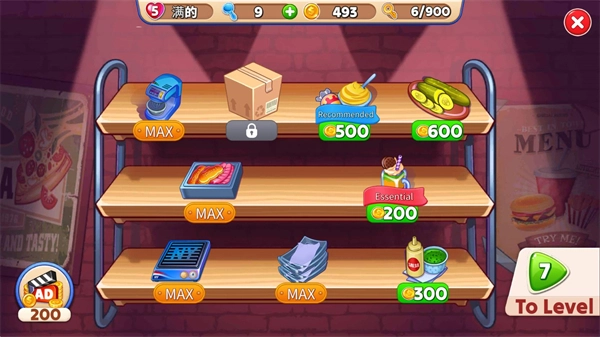 进入关卡前可以对厨房进行升级,升级需要消耗钥匙和金币。