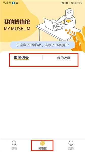 在博物馆界面中,用户能够便捷查看自己的识图记录与我的收藏,以便浏览使用。