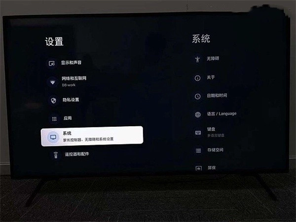 按照图示操作,先进入电视的设置界面,接着找到“系统”选项并点击进入。