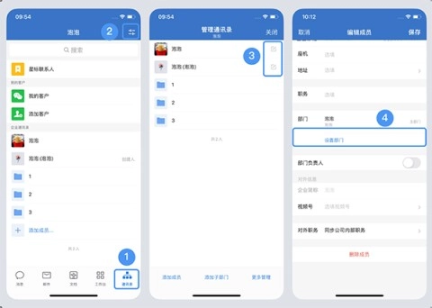 通过【手机端->通讯录->通讯录管理】这个路径,就能完成成员所在部门信息的批量移动与修改操作。