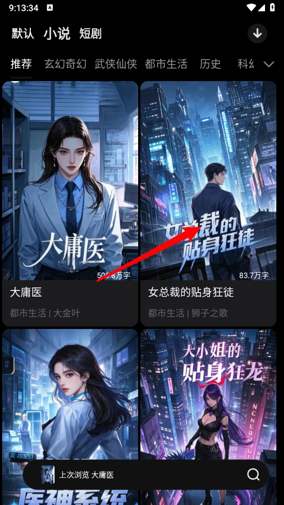 在主页选择所需查看的小说资源。