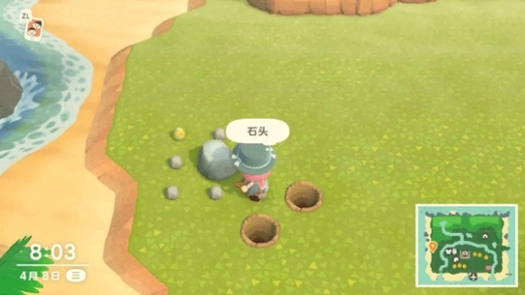 4、手持铲子,斜对石头连续按A,一直摁,可掉满8个道具。