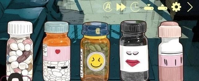 在场景里能够查看和使用各类物品(像不同的药物),点击物品就能查看它的相关信息(例如“头疼药”),有些物品的使用还会对剧情发展或者角色的状态产生影响。