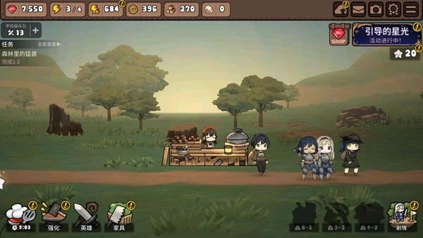 游戏的画风十分可爱,玩法也相当佛系,只需每隔几个小时登录一次,清理体力、补充食材,就能慢慢提升自己的实力,比较花时间的环节大概就是打水晶和挖矿之类的了。