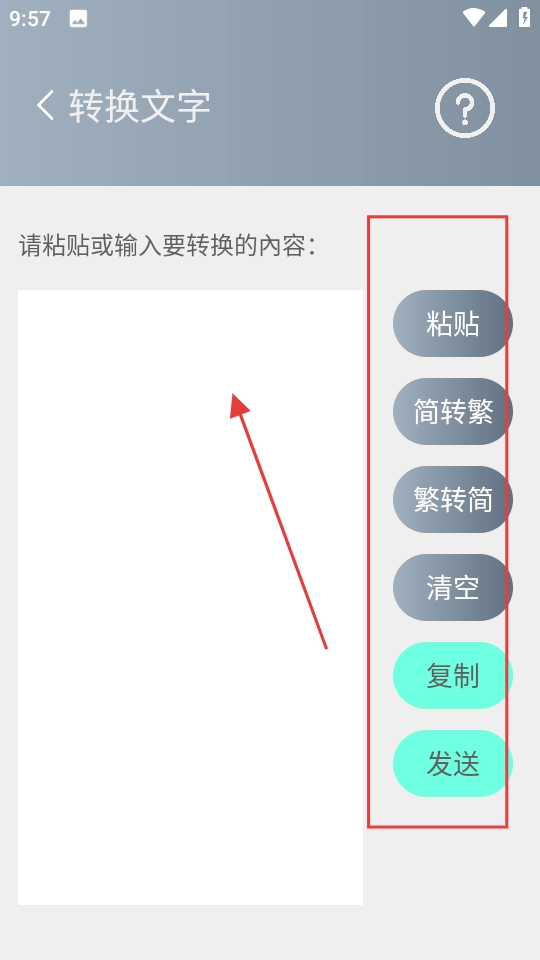 2、转换文字页,粘贴或输入内容,使用简转繁、繁转简等功能,操作后复制或发送。