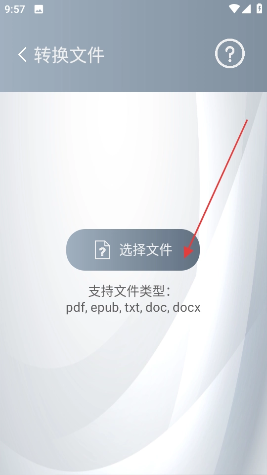 1. 来到文件转换页面,点击“选择文件”,上传诸如pdf、epub等支持格式的文件,以进行转换。