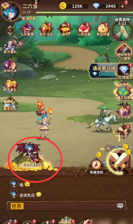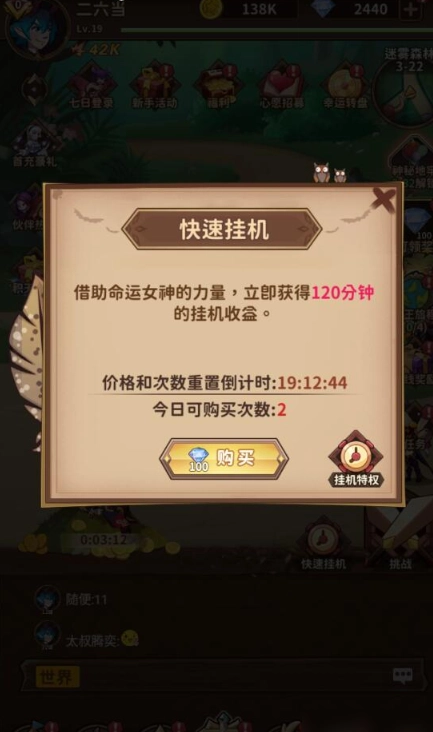 通关到3-16关卡后,会解锁“快速挂机”功能,此后每天能快速领取三次挂机收益。