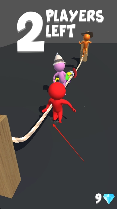 3、持续跳过绳索保持通关,随着对手减少,上方显示剩余玩家数变少,当成为最后留在场上的火柴人时,即可获胜。