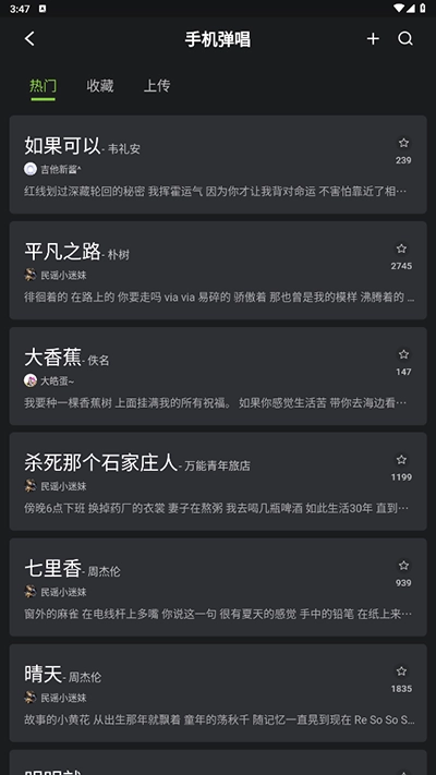 另外在手机弹唱页面内我们可以选择歌曲进行弹唱;