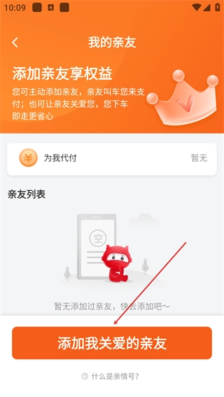 在我的亲友页面,点击【添加我关爱的亲友】按钮发起添加。