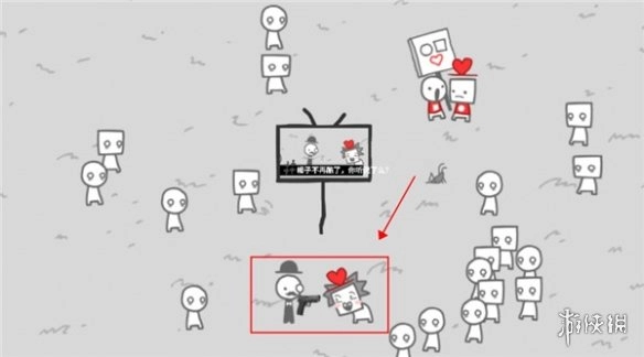 11、游戏结局是,只有呼吁和平的情侣和引导舆论的戴帽子的人活了下来,小情侣坐在死去人们的坟墓前。