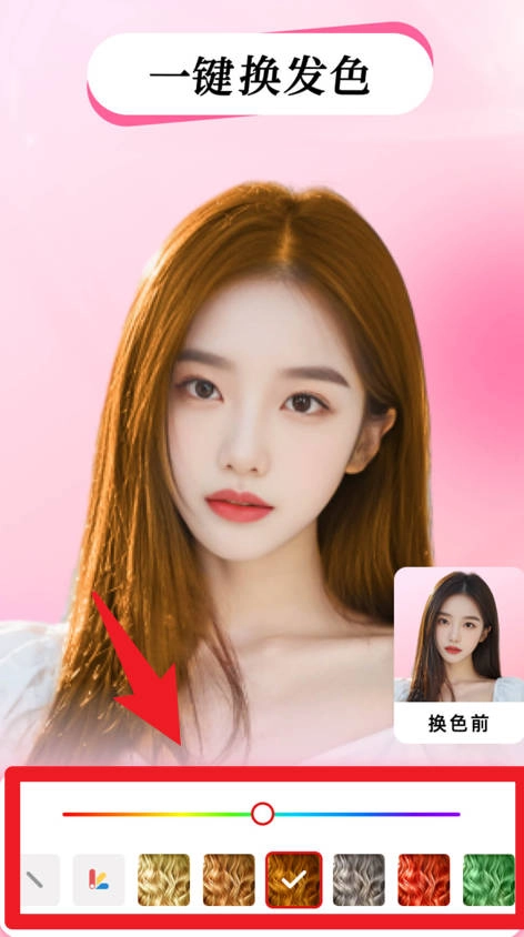 换发色功能支持一键切换,提供多种颜色选择,通过滑动调节工具可让发色呈现更自然、更具个性的效果。