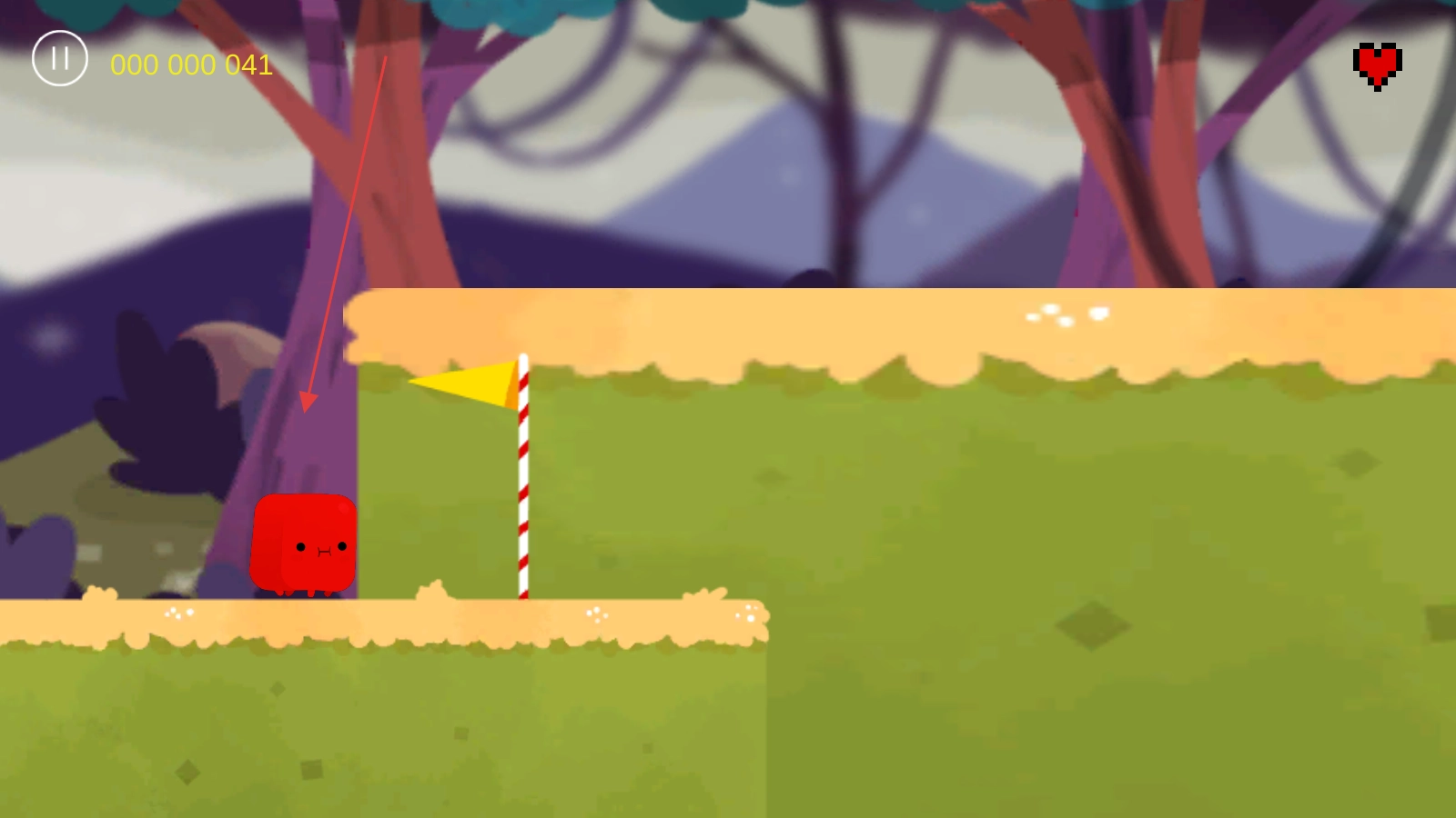 2. 当进入关卡后,对红色方块角色进行操控,使其在场景里不断前行,过程中要留意躲开障碍。